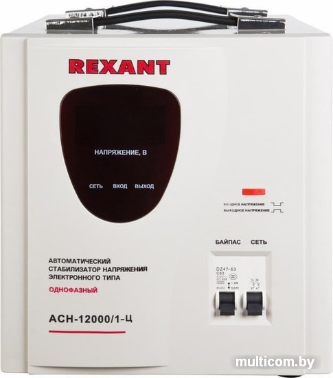 | Информация | Однофазный стабилизатор REXANT для дома и офиса. Защищает бытовую технику от перепадов в сети и короткого замыкания. |