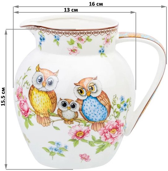 | Информация | ? Кувшин Elan Gallery Совушки / 420344 - это изящная посуда с удобной ручкой и ярким рисунком, который понравится как взрослым, так и детям. Милые совы в окружении ярких цветов придадут настроения вашему чаепитию. ? Кувшин упакован в прочную подарочную упаковку и послужит желанным подарком любой современной хозяйке. ? В серии «Совушки» также представлены другие товары для сервировки стола — чайники, чайные пары, кружки, тарелки и многое другое. ? Собирая серию, можно наполнить ваш дом прекрасной качественной посудой, создающей удивительное яркое настроение. |