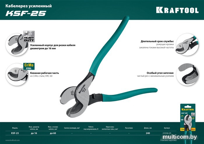 | Информация | Профессиональный электромонтажный инструмент позволяет качественно выполнять работы с силовыми проводами и кабелем. Продукция производится в соответствии со стандартами ISO и проходит строгий контроль качества. |
