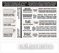 | Информация | Калибр струн — .012, .016, .024, .032, .042, .053. Сердечник струн сделан из стали и имеет гексагональную форму (форма в виде шестиугольника, которая обеспечивает более плотный контакт обмотки со струной и улучшает звучание), а нижние 4 струны имеют обмотку из фосфорной бронзы, дающей сбалансированное звучание по всему частотному диапазону, одновременно теплое и насыщенное. Такие струны отлично подойдут для студийных записей. Струны сделаны в США и поставляются в экологичной упаковке, защищающей их от коррозии. |