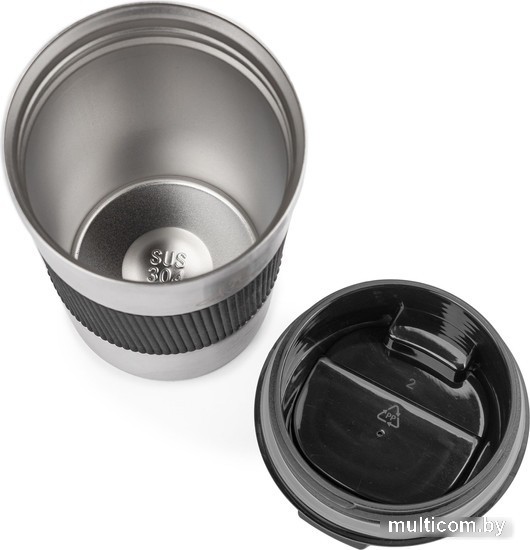 | Информация | Термокружку удобно держать в руке даже с горячим содержимым, ведь силиконовая нескользящая накладка в середине корпуса служит термоизолятором. Сужающаяся ко дну форма позволяет вместить кружку в подстаканники диаметром от 7 см. На дне также есть противоскользящее термоизолирующее покрытие. Упаковано в коробку 16?9,5?9,5 см. |