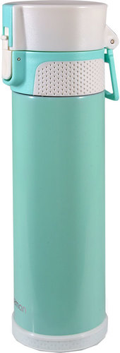 | Информация | Термокружка изготовлена из нержавеющей стали. • Двойные стенки с вакуумной изоляцией позволяют долгое время сохранять температуру содержимого (до 4-х часов). • Прочная герметичная конструкция корпуса: 100% защита от протекания. • Проста в использовании: открывается одной рукой с помощью нажатия кнопки. • Широкое горлышко позволяет легко мыть и наливать жидкость. • Удобна для использования в автомобиле. |
