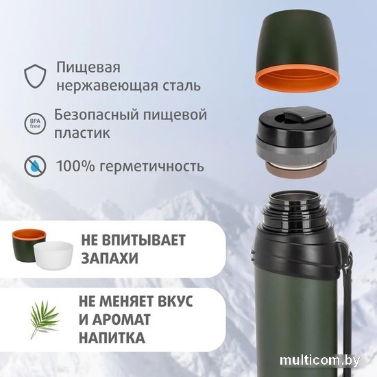 | Информация | ? Термос для напитков Тонар T-KD-938-2.5 (2.5л, хаки) оснащен двойными стенками с вакуумной изоляцией, которая сохраняет напитки горячими или холодными длительное время. ? Он отлично сохраняет температуру, свежесть напитка и его оригинальный вкус, благодаря изготовлению из нержавеющей стали с защитным покрытием. ? Термос имеет герметичную откидную крышку с кнопкой-предохранителем, исключающую случайное проливание, а также дополнительную теплоизоляцию внутри пробки. |