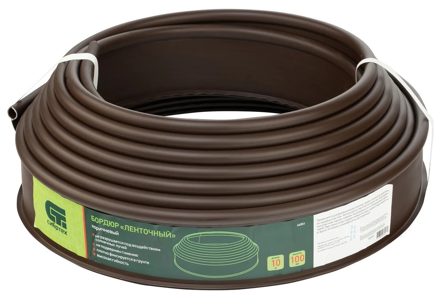 | Информация | Полиэтиленовый бордюр Сибртех «Лента» 64551 размером 10 х 1000 см, коричневого цвета, предназначен для оформления отдельных участков озелененных территорий. Гибкому ограждению можно придать любую форму, что позволяет подчеркнуть контуры цветников и грядок, защитить грунтовые дорожки от размывания, обозначить границы приствольных кругов деревьев. Преимущества Невосприимчивость к влаге и перепадам температуры — бордюр изготовлен из атмосферостойкого пластика. Износостойкость — ограждение сохраняет форму и цвет на протяжении длительного времени. Быстрая установка — предварительная подготовка территории и монтаж крепежей не требуются. Удобная транспортировка — бордюр компактно упакован и весит всего 1,7 кг. |