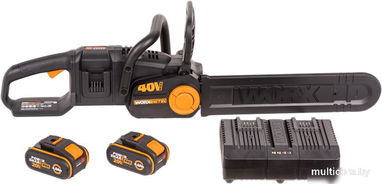 | Комплект поставки | - Аккумуляторная цепная пила; - Аккумуляторная батарея 4Ач (WA3014) – 2шт.; - Зарядное устройство (WA3883) – 1 шт.; - Цепь (WA4123) – 1 шт.; - Шина (WA4393) – 1 шт.; |