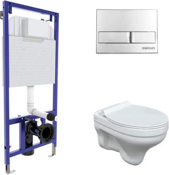 | Информация | Полный комплект BERGES для монтажа подвесного унитаза. 1. Инсталляция NOVUM525 Толщина бачка 80 мм. Межосевое расстояние под крепежные шпильки унитаза 18 и 23 см. Резервуар воды объемом 10 литров с тепло-шумоизоляцией. Уровень шума при давлении 3 бар не превышает 13 дБ. Подвод воды сверху (G1/2 наружная). Объем смыва 3/6 литра с возможностью регулировки. Металлический каркас, окрашенный антикоррозийной эмалью, расчетная нагрузка до 400 кг. Ножки регулировки высоты из оцинкованной стали. Возможность установки в угол. 2. кнопка L3 хром глянец 3. унитаз ALBIT S Безободковая система смыва антибактериальное покрытие экономия воды 4. сиденье дюропласт Top Slim SO микролифт, быстросъем Все крепежи для установки в комплекте |