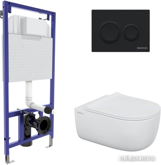 | Информация | Полный комплект BERGES для монтажа подвесного унитаза. 1. Инсталляция NOVUM525 Толщина бачка 80 мм. Межосевое расстояние под крепежные шпильки унитаза 18 и 23 см. Резервуар воды объемом 10 литров с тепло-шумоизоляцией. Уровень шума при давлении 3 бар не превышает 13 дБ. Подвод воды сверху (G1/2 наружная). Объем смыва 3/6 литра с возможностью регулировки. Металлический каркас, окрашенный антикоррозийной эмалью, расчетная нагрузка до 400 кг. Ножки регулировки высоты из оцинкованной стали. Возможность установки в угол. 2. кнопка O5 черная Soft Touch 3. унитаз EGO XL Rimless, безободковая система смыва, антибактериальное покрытие экономия воды, скрытый крепеж 4. сиденье дюропласт Okus Slim SO микролифт, быстросъем. Все крепежи для установки в комплекте |