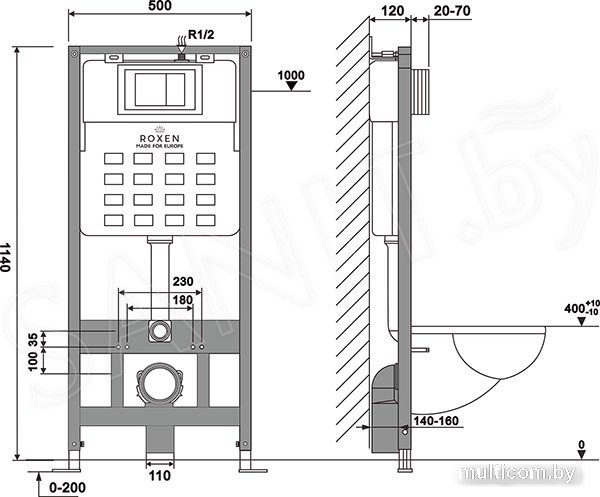 | Отверстия под инсталляцию | 180 мм |