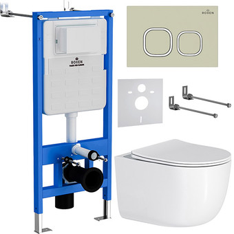 | Информация | ? Ультратонкая инсталляция 6 в 1 Roxen StounFix Slim 966620 с удлиненными креплениями, шумоизоляционной плитой и кнопкой смыва Roxen Santi 410280BG в комплекте. Подвесной унитаз Roxen Vortex Tornado 530160-01 Rimless Soft Close включен в комплект. ?? Система инсталляции Roxen StounFix Slim 710200 - ультратонкая модель с усиленной монтажной рамой, подходит для всех типов унитазов. Механическое управление смыва, шумоизоляционная пластина S-Protect и гарантия производителя 25 лет. ? Кнопка для инсталляции Roxen Santi 410280BG - ультратонкая смывная клавиша Slim Button с минималистичным дизайном. Изготовлена из ударопрочного пластика HDPE, имеет нестираемое покрытие поверхности. ?? Подвесной унитаз Roxen Vortex Tornado 530160-01 Rimless Soft Close - модель с технологией смыва Tornado, санитарным фарфором Porcelain и антибактериальным покрытием Ultra Glide. В комплекте тонкое быстросъемное сиденье с крышкой Soft Close. |
