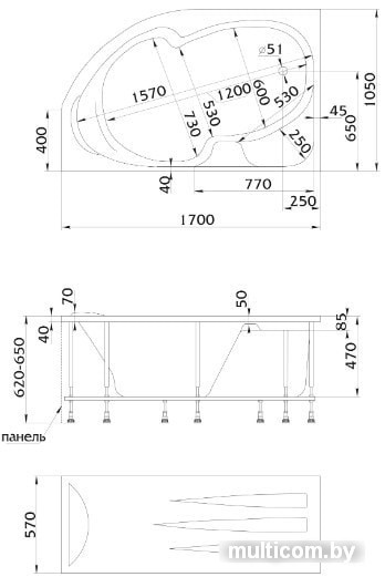 | Глубина ванны | 47 см |