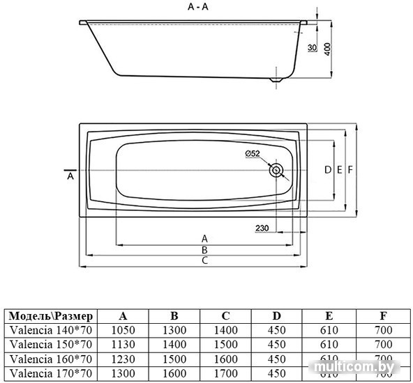| Глубина ванны | 40 см |