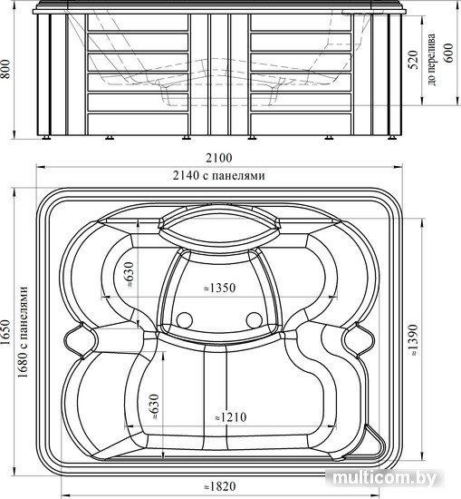 | Информация | Гидромассажный бассейн «DeLuxe» — многофункциональный спа, выполненный в элегантном классическом дизайне, который является прекрасным дополнением к стильному современному дому.Чаша бассейна изготовлена из сантехнического акрила перламутрового цвета, который подчеркивает роскошь и превосходный дизайн Вашего SPA. Оптимальное сочетание цвета чаши и ее внешней отделки из влагостойкой террасной доски позволяет бассейну легко вписаться в любой интерьер.Бассейн обладает небольшой, но удивительно просторной чашей, благодаря идеальным пропорциям. Его размер 214х168х80 см, вмещает 700 литров воды. Наслаждаться отдыхом, релаксацией и приятным гидромассажем могут одновременно до четырех человек. Мини-бассейн оснащен гидромассажной системой из 27 высокопроизводительных форсунок, способных обеспечить качественный эффективный массаж шеи, спины, поясницы, рук, ног, ступней. Гидротерапия ускоряет обменные процессы, способствует улучшению фигуры, укреплению иммунитета, питает ткани кислородом. Для большего комфорта в системе гидромассажа предусмотрена система «Turbo Pool», с помощью которой можно регулировать силу давления водяных струй.Эргономичные сидения повторяют пропорции тела, на них можно удобно расположиться сидя или полулежа. В лежачей зоне в дно чаши встроено 12 аэромассажных форсунок, которые вырабатывают воздушные потоки, мягко воздействующие на тело. Такой массаж успокаивает, расслабляет, избавляет от стресса и бессонницы, а также очень нравится детям. Для удобного принятия SPA-процедур на двух бортиках бассейна вмонтированы мягкие подголовники, что делает процесс принятия ванн максимально комфортным для нескольких пользователей.Спа-бассейн «DeLuxe» обладает хорошей комбинацией встроенных функций. Есть режим быстрого наполнения чаши водой, позволяющий за считанные минуты обновить воду в бассейне. Для поддержания чистоты и высокой гигиены спа оборудован системами фильтрации и дезинфекции. Постоянно поддерживать комфортную температуру воды в чаше позволяет система подогрева. Красивая подсветка воды в мини-бассейне спа осуществляется двумя лампами переменного цвета. Хромотерапия окрашивает разноцветной палитрой всю воду в бассейне и оказывает благоприятное воздействие на психическое, физическое и эмоциональное состояние купающихся.Электронный SPA-контроллер, с помощью которого осуществляется управление всеми функциями бассейна, имеет простую панель управления с интуитивно понятным интерфейсом. Он расположен на бортике чаши и позволяет легко и быстро отрегулировать интенсивность гидромассажа, не покидая теплого бассейна.Преимущества спа-бассейнаDeluxe:Изготовлен из акрила европейского качества, поэтому имеет долгий эксплуатационный периодВместительная чаша на трех человекПанели из террасной доски придают бассейну неповторимый современный видМеталлический каркас обеспечивает повышенную устойчивость и безопасностьСовременная изоляционная система от Radomir на чаше ванны и панелях способствует поддержанию оптимальной температуры воды в ванне и значительно снижает уровень шумаНа данную модель предусмотрены 27 форсунок гидромассажа для расслабления, оздоровления или поддержания общего тонусаНа дно ванны устанавливается аэромассаж из 12 джетИдеальное сочетание аэро- и гидромассажа для обеспеч