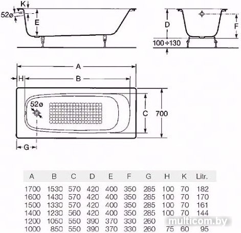 | Информация | Эмалированная прямоугольная чугунная ванна. |