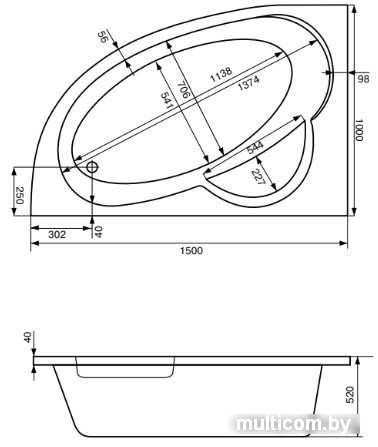 | Глубина ванны | 52 см |