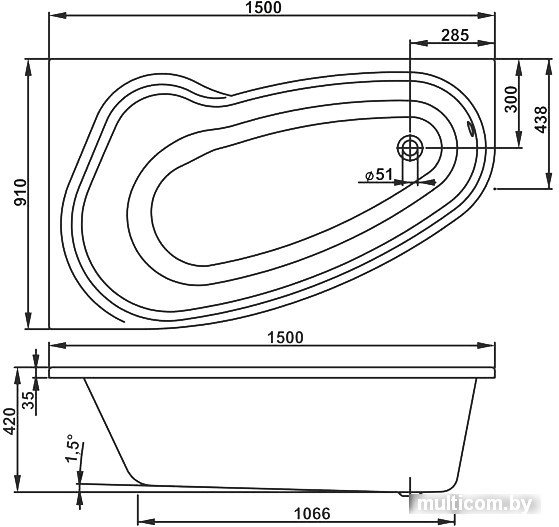 | Форма | угловая ассиметричная |