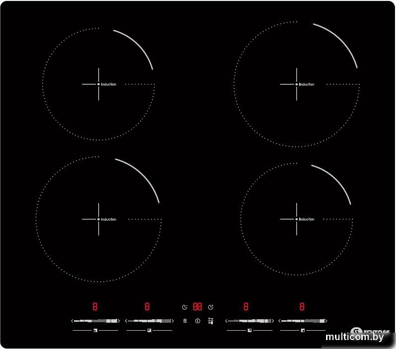 | Подробная информация о конфорках | Передняя левая 180 мм, 1800 Вт, бустер 2100 Вт Задняя левая 160 мм, 1200 Вт, бустер 1500 Вт Передняя правая 160 мм, 1200 Вт, бустер 1500 Вт Задняя правая 180 мм, 1800 Вт, бустер 2100 Вт |