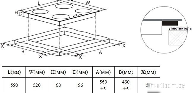 | Индукционные конфорки | Да 4 |