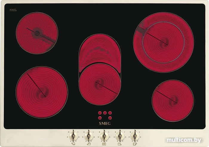 | Подробная информация о конфорках | Задняя левая: 1,2 кВт, o 140 мм Передняя левая: 2,0 кВт, o120- 180 мм Центральная: 2,0 кВт, o148х253 мм Задняя правая: 2,4 кВт, o 144-214 мм Передняя правая: 1,2 кВт, o 148 мм |