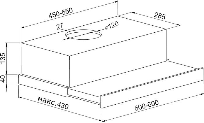 | Диаметр воздуховода | 120 мм |