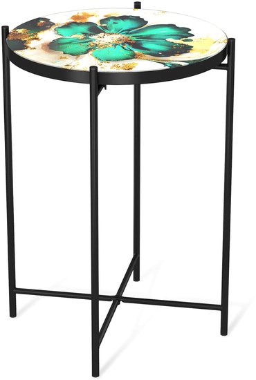 журнальный столик, 376x376 мм, высота 520 мм, материал: стекло (столешница), окрашенная сталь (опоры), рисунок