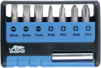 | Комплектация | - 1 держатель для бит - 7 бит - футляр |