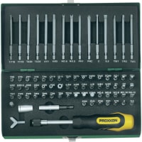 | Информация | Промышленное качество специального сплава хром-молибден-кремний-магний-ванадиевой стали. Типы и размеры указаны на иллюстрации. Включает отвертку с пружинной втулкой для удержания бит. Имеется намагниченный держатель для работ с электрошуруповертом или дрелью. Переходник с наружным квадратом и наружным шестигранником, соединенный с приспособлением с внутренним квадратом и внутренним шестигранником. Специальный ключ для винтовых хомутов и другого крепежа. Все упаковано в прочный окрашенный стальной футляр. Каждая позиция отчетливо промаркирована. |