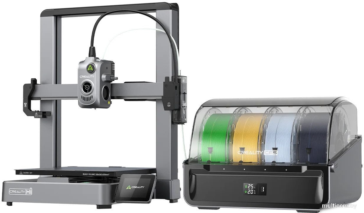 | Информация | - 3D-принтер Creality Hi - новейшая модель FDM-принтера с поддержкой многоцветной печати до 16 цветов одновременно благодаря системе CFS. Высокочувствительный тензодатчик обеспечивает автоматическое выравнивание платформы для улучшенной точности печати, а двойные направляющие винта на оси X повышают стабильность работы. - Принтер оснащен складным сенсорным экраном 3.2 дюйма для удобного управления, встроенной камерой для удаленного мониторинга процесса и возможностью быстрого старта за 8 минут. Устройство поддерживает интеллектуальное управление несколькими филаментами, а также оснащено звуковыми уведомлениями о завершении или прерывании печати. - Прочная цельнометаллическая конструкция и линейная направляющая на оси X обеспечивают снижение вибраций и более плавную работу. Встроенный датчик расхода нити и быстросменная конструкция сопла делают эксплуатацию Creality Hi максимально простой и надежной, а высокая максимальная температура экструдера и стола позволяют использовать различные современные материалы. |