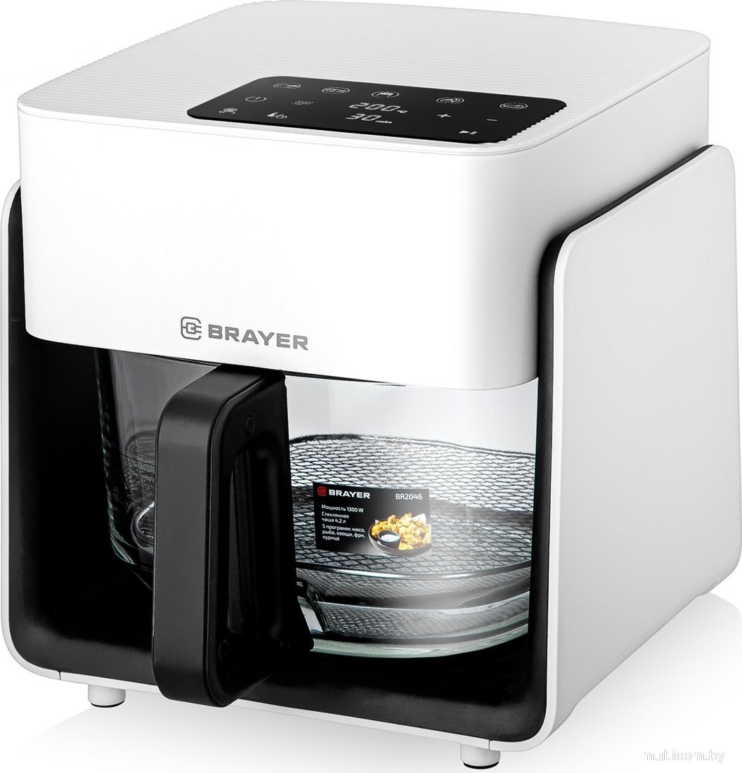 | Информация | -Аэрогриль BRAYER BR2046 - это современное устройство для приготовления различных блюд с минимальным количеством масла благодаря технологии циркуляции горячего воздуха. Прибор оснащён стеклянной чашей объемом 4.2 литра, что позволяет готовить еду для всей семьи, сохраняя естественный вкус и полезные свойства продуктов. -Модель обладает мощностью 1050 Вт, что обеспечивает быстрое и равномерное приготовление блюд. Для удобства пользователя предусмотрено 5 автоматических программ:курица, рыба, фри, овощи и мясо, что облегчает процесс выбора оптимального режима готовки. -Корпус аэрогриля выполнен из высокопрочного термостойкого пластика, что гарантирует долговечность и безопасность эксплуатации. Сенсорное управление и информативный LCD-дисплей делают работу с прибором простой и интуитивно понятной, а также позволяют гибко настраивать температуру в диапазоне 40 - 200 °C и устанавливать таймер до 60 минут. -Для дополнительной безопасности предусмотрена функция блокировки от детей, а также автоматическое отключение устройства. BRAYER BR2046 станет отличным помощником на кухне для быстрого, вкусного и полезного приготовления любимых блюд. |