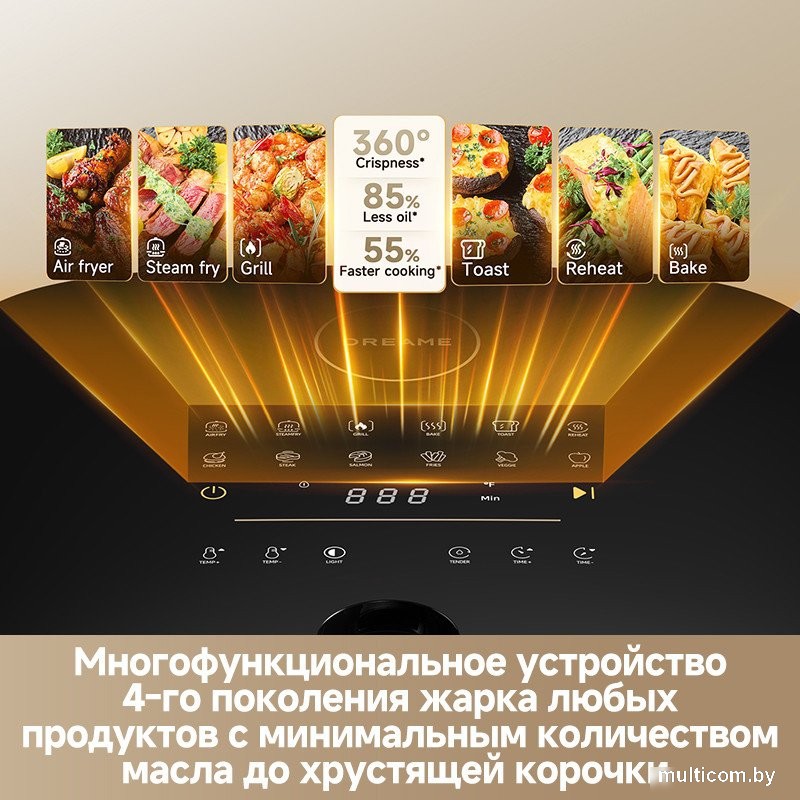 | Информация | - Аэрогриль «6 в 1» — это универсальное устройство, которое объединяет в себе функции воздушной обжарки, обжарки с подачей пара, гриля, повторного подогрева, выпечки и запекания. С его помощью вы сможете готовить разнообразные блюда, используя всего одно устройство. - Объем корзины составляет 7 литров, что позволяет готовить большие порции. Номинальная мощность 2300 Вт обеспечивает быстрое и равномерное приготовление пищи. Диапазон температур от 50 до 200°C дает возможность экспериментировать с различными рецептами. - Аэрогриль оснащен 12 предустановленными режимами, что делает процесс приготовления еще более удобным. Внутренняя поверхность выполнена из металла, а внешняя — из сочетания металла и пластмассы, что обеспечивает долговечность и легкость в уходе. - Светодиодный дисплей позволяет легко управлять настройками, а керамическое нанопокрытие корзины предотвращает прилипание пищи. Технология Dual-Source Cyclonic HeatTM обеспечивает эффективную циркуляцию теплого воздуха, что способствует равномерному приготовлению. - Интеллектуальная технология обработки паром SmartSteam 3X InfuseTM позволяет сохранить все полезные вещества в продуктах. Пять уровней защиты гарантируют безопасность использования, исключая риск поражения электрическим током. Также доступна функция сушки фруктов при низких температурах, что расширяет возможности вашего аэрогриля. |