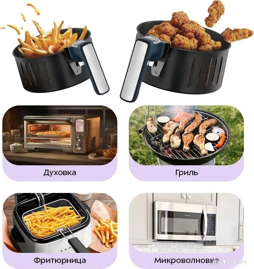| Информация | Современный аэрогриль КТ-8118 позволяет готовить большинство продуктов без добавления масла, при этом они получаются сочными и с хрустящей корочкой, главное правильно подобрать время приготовления. |