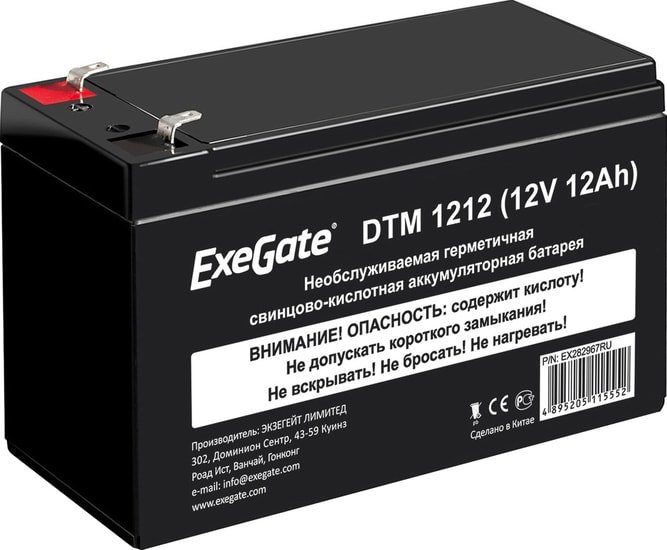 | Информация | Свинцово-кислотные необслуживаемые аккумуляторы ExeGate серии DTM изготовлены по технологии AGM. Обладают низким внутренним сопротивлением и саморазрядом. Оптимизированы для работы в режиме постоянного подзаряда (буферный режим) или в режиме разряд-заряд (циклический режим). Корпус выполнен из пластика, не поддерживающего горение. Конструкция АКБ исключает утечку электролита. Система внутренней рекомбинации газа, не требует долива воды. Нет ограничений на перевозку любым видом транспорта. Эксплуатация АКБ допустима в любом положении, кроме перевернутого верх дном. |
