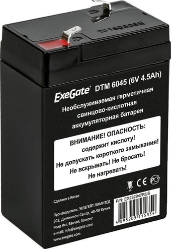 | Информация | Свинцово-кислотные необслуживаемые аккумуляторы ExeGate серии DTM изготовлены по технологии AGM. Обладают низким внутренним сопротивлением и саморазрядом. Оптимизированы для работы в режиме постоянного подзаряда (буферный режим) или в режиме разряд-заряд (циклический режим). Корпус выполнен из пластика, не поддерживающего горение. Конструкция АКБ исключает утечку электролита. Система внутренней рекомбинации газа, не требует долива воды. Нет ограничений на перевозку любым видом транспорта. Эксплуатация АКБ допустима в любом положении, кроме перевернутого верх дном. |