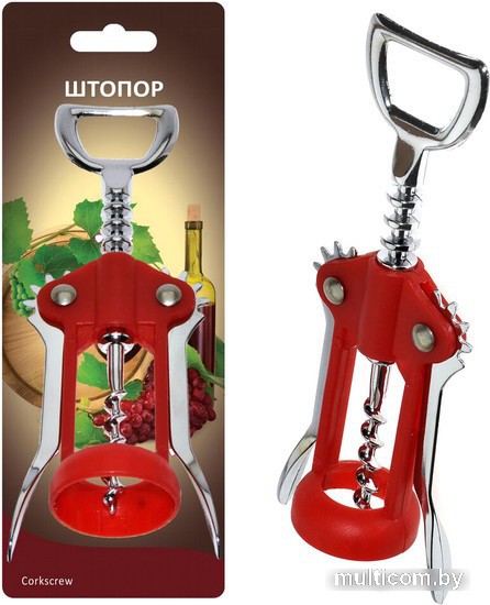 | Информация | Аккуратно достать пробку из бутылки невозможно без качественного штопора с рычажным механизмом. Изделие позволяет легко открыть любую бутылку, достаточно вкрутить винт и зафиксировать нижнюю часть на горлышке. В процессе вкручивания рычаги будут подниматься вверх, после чего их нужно опустить вниз, чтобы достать пробку. Размер в упаковке: 24х9х3,6 см. |