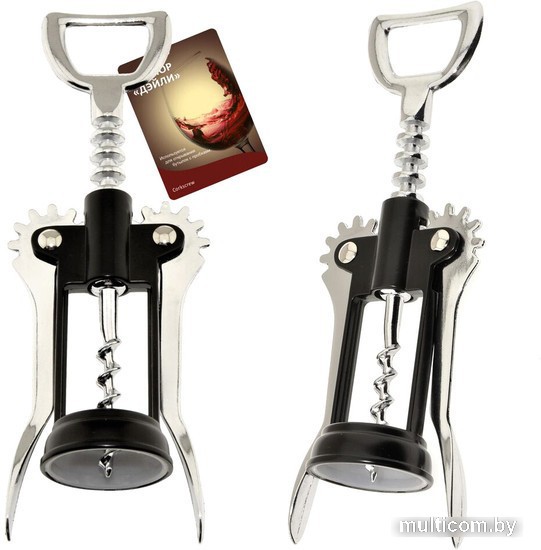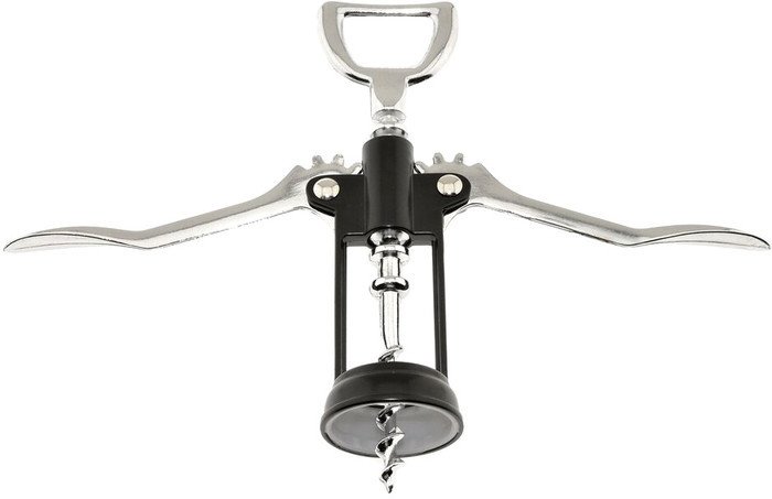 | Информация | Штопор используют для открывания бутылок с пробками. Изделие имеет рычажный механизм, позволяющий легко открыть любую бутылку. Ручка имеет специальную конструкцию, позволяющую без усилий откупоривать бутылку с пробками, а также снимать металлические крышки. Инструкция по применению: Опустите рычаги штопора вниз, вверните изделие в пробку, вращая по часовой стрелке. Рычаги самостоятельно поднимутся вверх, после чего их нужно снова опустить вниз для извлечения пробки. |