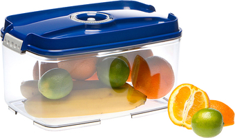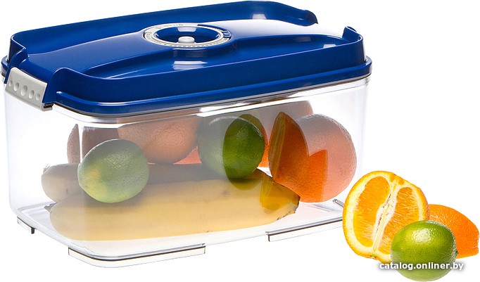 ИнформацияВакуумный контейнер VAC-REC-45 используется совместно с вакуумными упаковщиками, поддерживающими подключение вакуумного шланга, или с ручным насосом для упаковки продуктов в частных домах и квартирах для последующего их хранения. Модель имеет прямоугольную форму, оснащена силиконовым уплотнительным кольцом и индикатором даты (месяц и число) на крышке. Изделие выполнено из тритана, не содержащего бисфенол А, крышка — из ABS-пластика.
