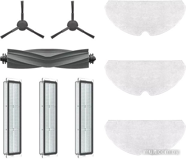 | Комплектация | щетка (основная — 1 шт., боковые — 2 шт.), салфетка (3 шт.), фильтр (3 шт.) |