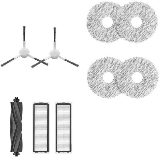 | Комплектация | Комплект аксессуаров состоит из основной щетки (1 шт.), боковых щеток (2 шт.), пылесборного фильтра (2 шт.) и сменной фибры (6 шт.). |