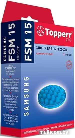 | Информация | Фигурный губчатый фильтр, соединенный с микрофильтром FSM 15 для пылесосов SAMSUNG. Предмоторный фильтр, объединяющий поролоновый и микрофильтр, что позволяет улавливать больше пыли. Такой фильтр можно без труда промыть водой, чтобы предотвратить засорение. Благодаря этому, сохраняется постоянно высокая мощность всасывания. |