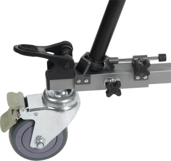 | Информация | GreenBean TrackMaster 03 – складная операторская тележка профессионального исполнения, предназначена для установки крупных и тяжелых штативов и стоек, нагрузка на тележку составляет 25 кг. Расстояние от середины основания до середины отверстия под шипы (радиус тележки) составляет 50 см. Тележка универсальная, с регулируемым положением упоров под размах ног треноги или стойки, подходит для крепления обычных (с резиновыми наконечниками) или шипованных (с двумя шипами) опор видеоштатива. Используется при различных видах видеосъемки – для плавных проводок в кадре по прямой траектории или дуге с разными радиусами, и в том числе для поворота камеры вокруг своей оси или съемки «одним кадром» Три больших колеса O 100 мм с шарикоподшипниками позволяют тележке плавно перемещаться внутри помещения студии или на улице, преодолевая такие препятствия, как кабель-канал, электрические провода, небольшие неровности. Каждое колесо оснащено индивидуальным тормозом, и вы можете заблокировать любое из колес, какое будет удобнее. Опорные сегменты платформы выполнены из квадратной трубы сечением 25х25 мм, которая позволит выдерживать значительные нагрузки. Тележка раскладывается разведением сегментов профиля, которые зажимаются фиксирующим винтом. Размах треноги регулируется перемещением опор вдоль профиля сегментов на нужное расстояние и фиксацией винтами. Обычные или шипованные опоры закрепляются в резиновых хомутах или в специальных винтовых зажимах с подпятниками тележки (в зависимости от типа опоры штатива). По окончанию съемок тележка так же быстро складывается и упаковывается в комплектный чехол для транспортировки и хранения. Для переноски тележки без чехла предусмотрена ручка. В сложенном виде длина тележки составляет 60 см, а вес – 4.8 кг. |