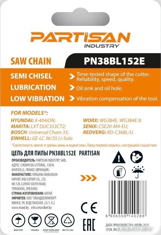 | Информация | • SEMI-CHISEL: цепь дольше сохраняет остроту и уверенно работает по грязной и замёрзшей древесине. • LOW KICKBACK: сниженный риск отдачи благодаря ограничителям глубины реза. • Простая заточка: зубья легко править, даже при отсутствии профессионального опыта. • Высококачественная сталь подготовленная к интенсивному использованию: повышенная прочность, устойчивость к растяжению и поломкам. • Антивибрационный профиль: снижает нагрузку на руки и увеличивает комфорт работы. • Экономичность: дольше служит, требует меньше замен ? снижает эксплуатационные расходы. Совместимость: HYUNDAI X?404ION MAKITA LXT DUC353CT2, DUC356Z, DUC357SF, DUC355PT2, DUC355Z, DUC353Z BOSCH UNIVERSAL CHAIN 35 EINHELL GE?LC 36/35 LI?SOLO WORX WG384E, WG384E.9 SENIX CSE20?M4?EU REDVERG RD?C36BL/U  |