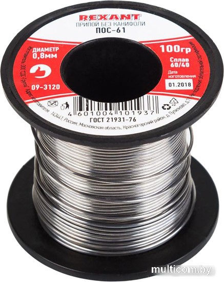 | Информация | Припой в катушке ПОС-61 O0,8 мм (без канифоли) REXANT предназначен для создания механически прочного и герметичного соединения деталей между собой или для их фиксирования на плате (пайка и лужение радиоэлектронных приборов, медицинской аппаратуры, автодеталей, печатных плат, электроаппаратуры и т.д.). Представляет собой проволоку (диаметром 0,8 мм) из сплава олова (60 %) и свинца (40 %). Как действует припой: нагреваясь до определенной температуры (165...175 °C) он расплавляется, смачивает спаиваемый металл, растекается по нему, заполняя место между соединяемыми деталями. Припой ПОС-61 обладает такими свойствами, как устойчивость к коррозии, создание механической прочности спаянного соединения, обладание удельной проводимостью (для токоведущих элементов). |
