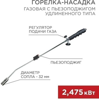 | Информация | Горелка REXANT GT-22 подходит для разморозки замков и водопроводных труб, работ с термоусаживаемыми изделиями профессионального сегмента, для очистки дорожек от сорняков и небольших работ по ремонту кровельных покрытий. Изделием можно воспользоваться в процессе пайки или сварки. Одно из главных мест применения – большие классические камины. Горелка воспроизводит стабильное пламя, предварительный нагрев газа не нужен. Так же предусмотрен пьезоподжиг, что делает горелку удобной в использовании. Изделие отличается удлиненной конструкцией, благодаря чему подойдет для использования на участках, до которых не дотянется любая стандартная горелка. Пламя не задувается при сильном ветре, регулируется с помощью вентиля. Горелка с широким стальным соплом экономична в расходе газовой смеси и используется совместно со стандартным газовым баллоном с цанговым креплением 220, 300 гр и т.д. |