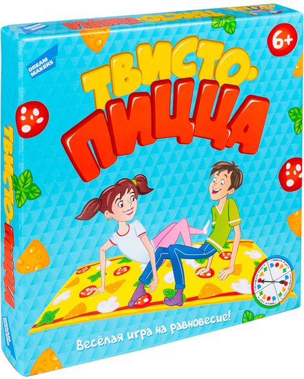 | Информация | "Твисто-Пицца" – это весёлая игра для всей семьи и любой компании, в которой игроки поочерёдно ставят руки или ноги на цвета игрового коврика и пытаются удержать равновесие. Весёлый игровой коврик имеет большой размер (170х110 см) и выполнен в виде пиццы, а цвета – в виде ингредиентов. Игра развивает ловкость и координацию движений. |
