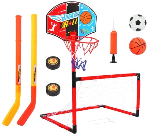| Комплектация | мяч/шар (2), ворота, кольцо баскетбольное, насос, шайба (2), клюшка (2), сетка (2), щит, игла |