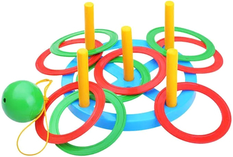| Информация | Две спортивных игры в одном наборе. Прекрасно развивают координацию движений. Стимулируют двигательную активность. Игра «Кольцеброс». Цель играющих — набросить кольца с установленного расстояния на один из четырех вертикальных стержней, так чтобы кольца оказались надетыми на стержень. Прекрасно развивает координацию движений. Стимулирует двигательную активность. Игра «Поймай шарик». Цель играющих — поймать подброшенный шарик так, чтобы он прошел сквозь кольцо. |