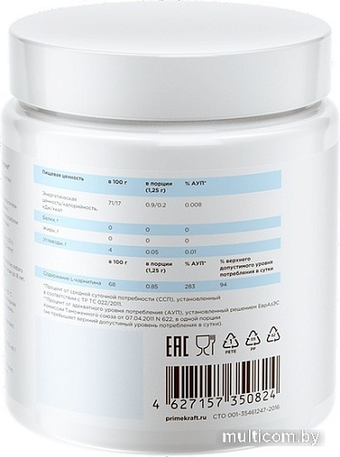 Информация | Безопасный жиросжигатель карнитин – витаминоподобное вещество, участвует в обмене веществ человека, увеличивает скорость транспортировки жирных кислот и препятствует разрушению мыщц после физических нагрузок. Кроме того, карнитин положительно влияет на соединительную ткань – укрепляет суставы, волосы, ногти. Преимущества: разнообразные приятные вкусы; быстрорастворимая формула Instant; без сахара; 160 порций в одной банке. Для чего используется? Повышает эффективность физических нагрузок, ускоряя сжигание подкожного жира во время тренировки, за счет усиленной транспортировки жировых клеток к месту их расщепления. Также он полезен для соединительной ткани, а значит хрящей, связок, суставов. Применяется в основном для похудения. Перед началом приема рекомендуем проконсультироваться со спортивным диетологом. |