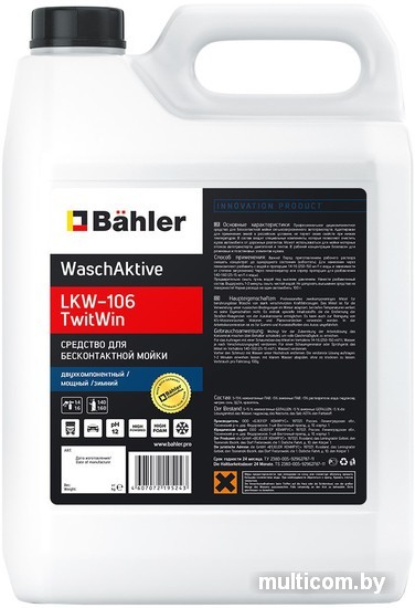 Информация | Профессиональное двухкомпонентное средство для бесконтактной мойки сильнозагрязненного автотранспорта. Адаптирован для применения зимой в российских условиях, не теряет своих свойств при низких температурах. В состав входят специальные компоненты, которые позволяют очистить кузов автомобиля от дорожных реагентов. Может использоваться для мойки моторных отсеков автотранспорта, двигателей и тентов. В рабочей концентрации безопасен для резиновых и пластиковых элементов кузова. Способ применения: Важно! Перед приготовлением рабочего раствора смешать концентрат до однородного состояния (взболтать). Для нанесения через пенокомплект разбавить с водой в пропорции: 1:4-1:6 (250-150 мл/1 л воды, в зависимости от степени загрязнения). Через пеногенератор или спреер пропорция для разбавления 1:40-1:60 (25-15 мл/1 л воды). Предварительно смыть грязь водой под высоким давлением. Нанести разбавленный состав. Выдержать 1-2 минуты, смыть чистой водой. Не допускать высыхания средства на поверхности! Норма расхода на один автомобиль: 100 г. |