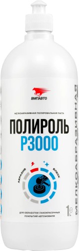 Информация | Полироль P3000 мелкоабразивная полировальная паста Разработана для обработки лакокрасочных покрытий автомобиля после использования грубых полировальных составов. Удаляет голограммы, придаёт финальный блеск. |