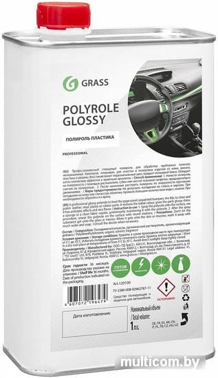 Информация | Профессиональный глянцевый полироль для обработки приборных панелей, неокрашенных бамперов, покрышек, для очистки и полировки изделий из кожи, винила, пластика и резины. Восстанавливает первоначальный цвет, придает глянцевый блеск. Обладает антистатическим эффектом и приятным ароматом. Способ применения: 1. Нанести полироль на поверхность с помощью распылителя, губки или чистой тканевой салфетки, предварительно смочив их полиролью. 2. После нанесения растереть полироль по поверхности круговыми движениями.В жестяной таре. |