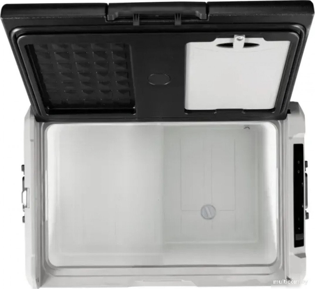 | Информация | Alpicool TS50 (12/24) — это компрессорный автохолодильник, который справляется со своей задачей в любых условиях: на трассе, в кемпинге, на рыбалке или в экспедиции. Он стабильно охлаждает или замораживает продукты вне зависимости от внешней температуры, с высокой точностью поддерживая диапазон от +20 до -20°C. Простор внутри — порядок снаружи Внутренний объём в 50 литров подходит для длительных поездок: внутрь легко помещаются напитки, свежие продукты, полуфабрикаты и всё необходимое на несколько дней. Стенки гладкие, без лишних выступов — удобно мыть и не скапливается грязь. Для удобной очистки предусмотрена сливная пробка — после разморозки или мойки не нужно переворачивать холодильник: просто откройте заглушку, и вода уйдёт сама. Надёжная конструкция Alpicool TS50 (12/24) рассчитан на использование в дороге. Его корпус изготовлен из прочного пластика, устойчивого к ударам, вибрации и солнечному нагреву. Боковые ручки облегчают переноску даже при полной загрузке. Крышка закрывается плотно и не болтается при движении. Для вашего удобства внутри камеры — две корзины для хранения продуктов. На верхней панели — четыре подстаканника: можно поставить банку, бутылку или термокружку. Это удобно в пути, на стоянке или в кемпинге, когда холодильник используется как импровизированный столик. Дизайн: строгость и практичность Внешне TS50 (12/24) — это сочетание сдержанного дизайна и функциональности. Матовый корпус в серо-чёрной гамме не маркий и легко очищается. Все элементы — на своих местах: сенсорная панель, эргономичные ручки, крышка с выемками под стаканы. Он органично смотрится в салоне авто, тягача или на катере, не выбиваясь из окружающей обстановки. Гибкость в каждой детали Крышку можно перенавесить, выбрав удобное направление открытия — это особенно важно в ограниченном пространстве. Хотите доступ справа или слева — холодильник подстроится под ваш маршрут и конфигурацию авто или кемпера. Удаленное управление Настроить модель TS50 (12/24) можно через сенсорную панель с ярким дисплеем — или удалённо через мобильное приложение. Это удобно, если устройство находится в багажнике: можно проверить температуру, включить/отключить режим, не выходя из салона. Приложение даёт доступ к основным настройкам: температуре, выбору режимов (Eco — энергосбережение и плавная работа/Max — быстрый набор заданной температуры), включению защиты аккумулятора. Всё просто и понятно. Комфорт и функциональность Встроенная подсветка внутри камеры помогает находить продукты даже в полной темноте. Также на панели управления есть USB-порт — для зарядки смартфона, фонарика или навигатора. Мелочь, но полезная в дороге или на природе. Компрессор работает тихо — до 45 дБ. Это почти не слышно ночью, так что Alpicool TS50 (12/24) не помешает сну в палатке или в салоне авто. Универсальное питание Холодильник подключается к сети 12/24 В в автомобиле или катере, а также к обычной розетке 220 В через адаптер (приобретается отдельно). В стандартной конфигурации этого более чем достаточно, но если хочется полной свободы от внешнего питания — предусмотрены дополнительные опции: Аккумуляторная батарея (опция): устанавливается внутрь корпуса и обеспечивает до 12 часов автономной работы. Подходит для поездок на природу, рыбалки, стоянок без доступа к сети. Солнечные панели (опция): экологичный 